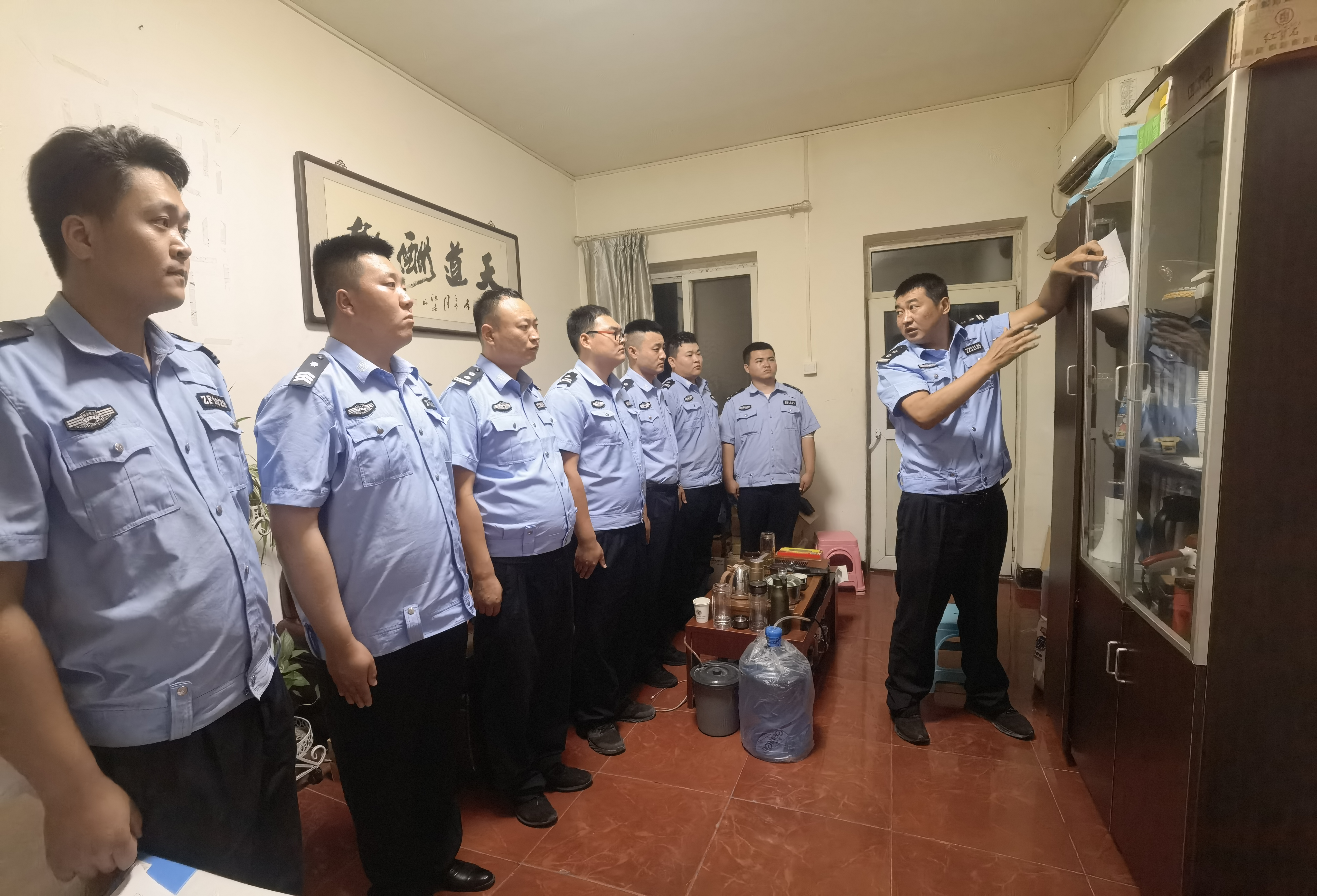 为切实做好防火事情,提升安保职员消防清静意识,增强消防清静治理,戎辉安保天宫院项目通过此次金科火灾使命现场管控袒露出来的一些薄弱环节,荟萃队长主干举行汇总讲评 。对管控缺乏之处举行总结,重点培训进入火灾管控现场后的清静注重事项,及管控重点 。